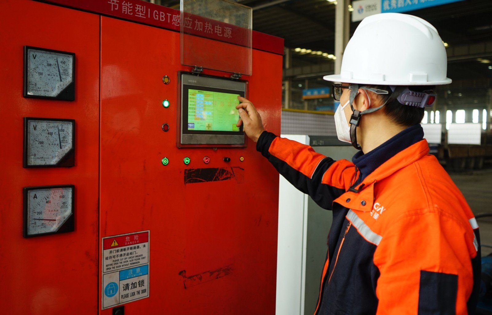 ▲中运锚链技术工程师操作“节能型IGBT感应加热电源”控制器