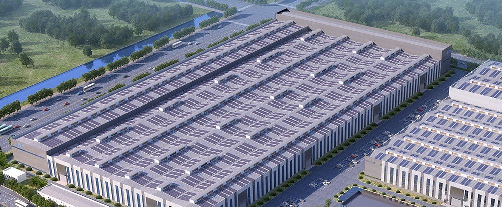 ▲中运锚链园区屋顶光伏鸟瞰效果图(已投入使用)